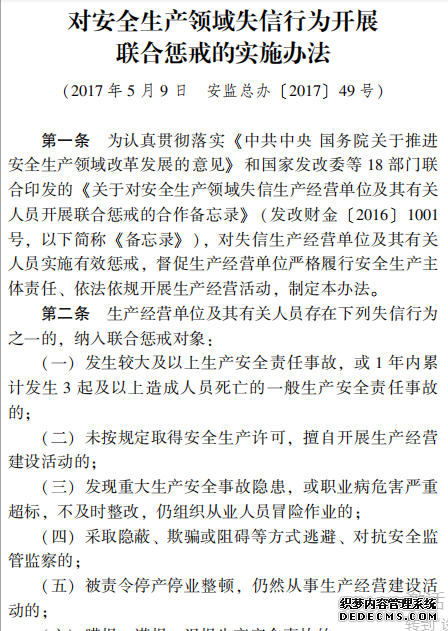 對安全生產(chǎn)領(lǐng)域失信行為開展 聯(lián)合懲戒的實(shí)施辦