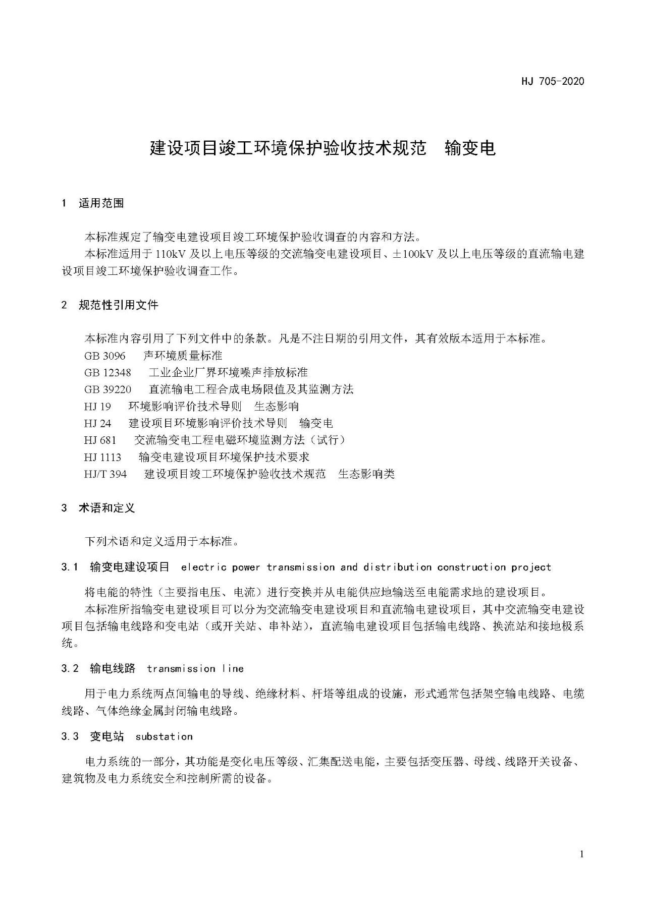 三、《建設(shè)項(xiàng)目竣工環(huán)境保護(hù)驗(yàn)收技術(shù)規(guī)范 輸變電》(HJ 705-2020)