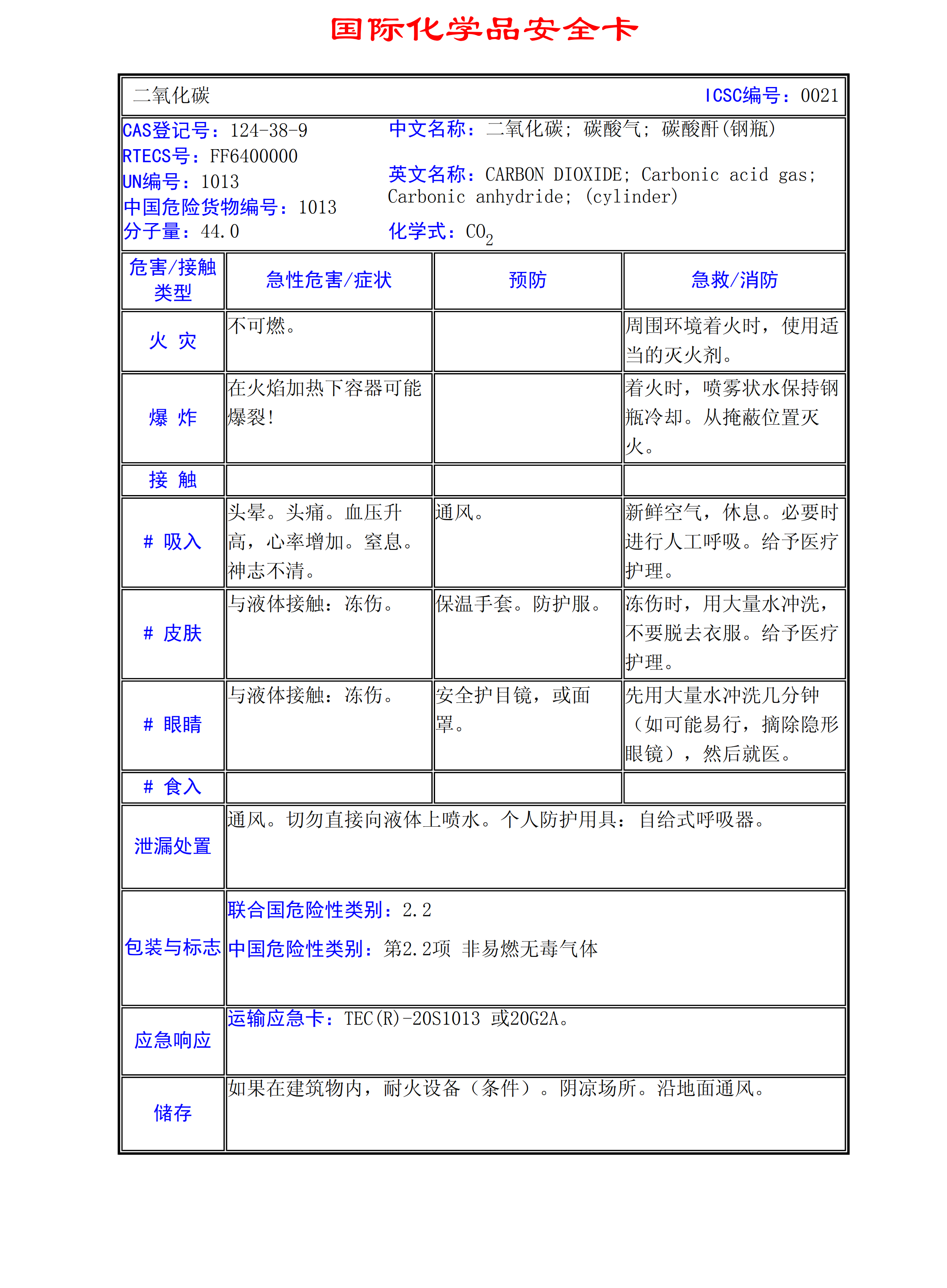 二氧化碳MSDS