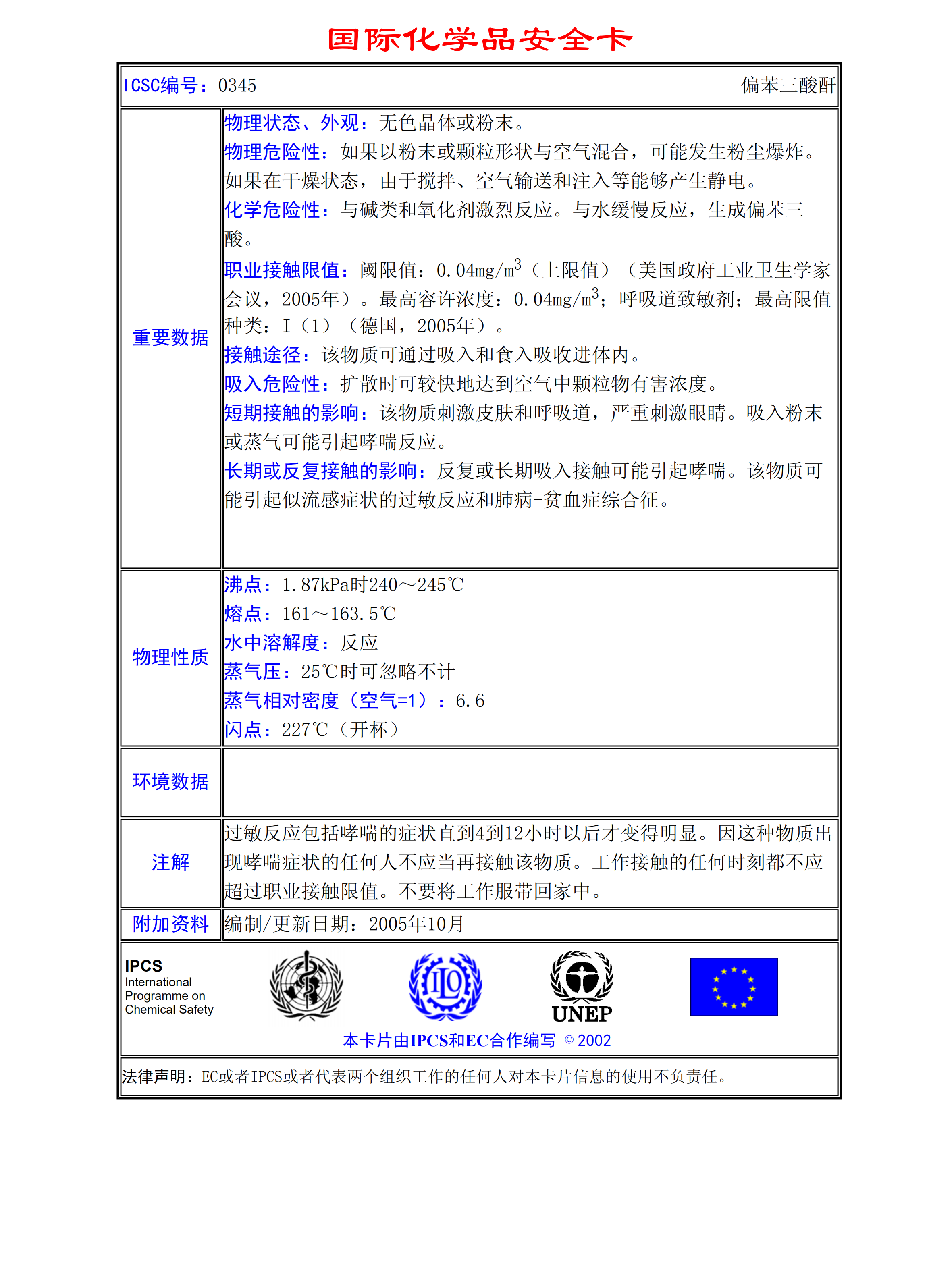 偏苯三酸酐MSDS
