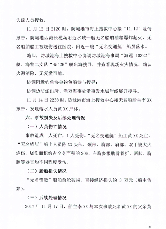 防城港“11.12“無名船舶爆炸事故調(diào)查報告