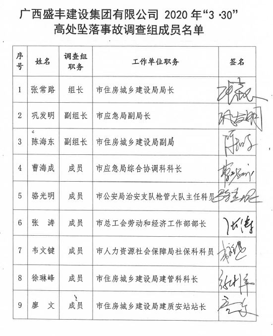 廣西盛豐建設集團有限公司中央商務區(qū)·翡翠園15號樓工程2020年“3·30”高處墜落事故調(diào)查