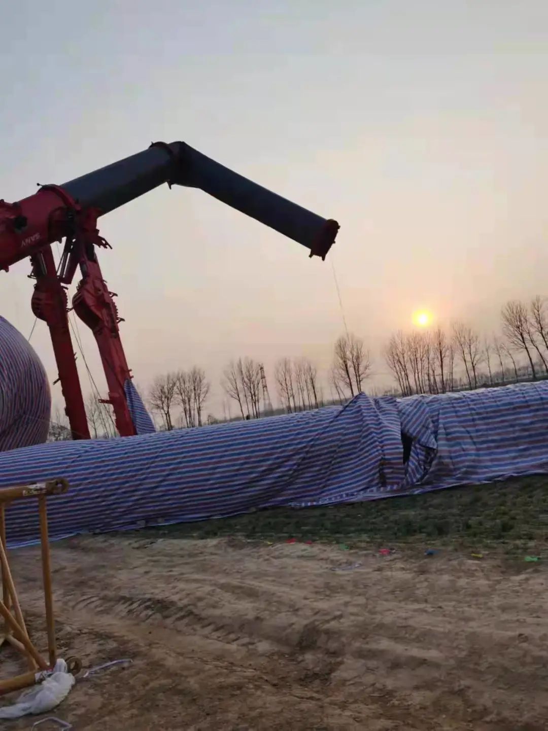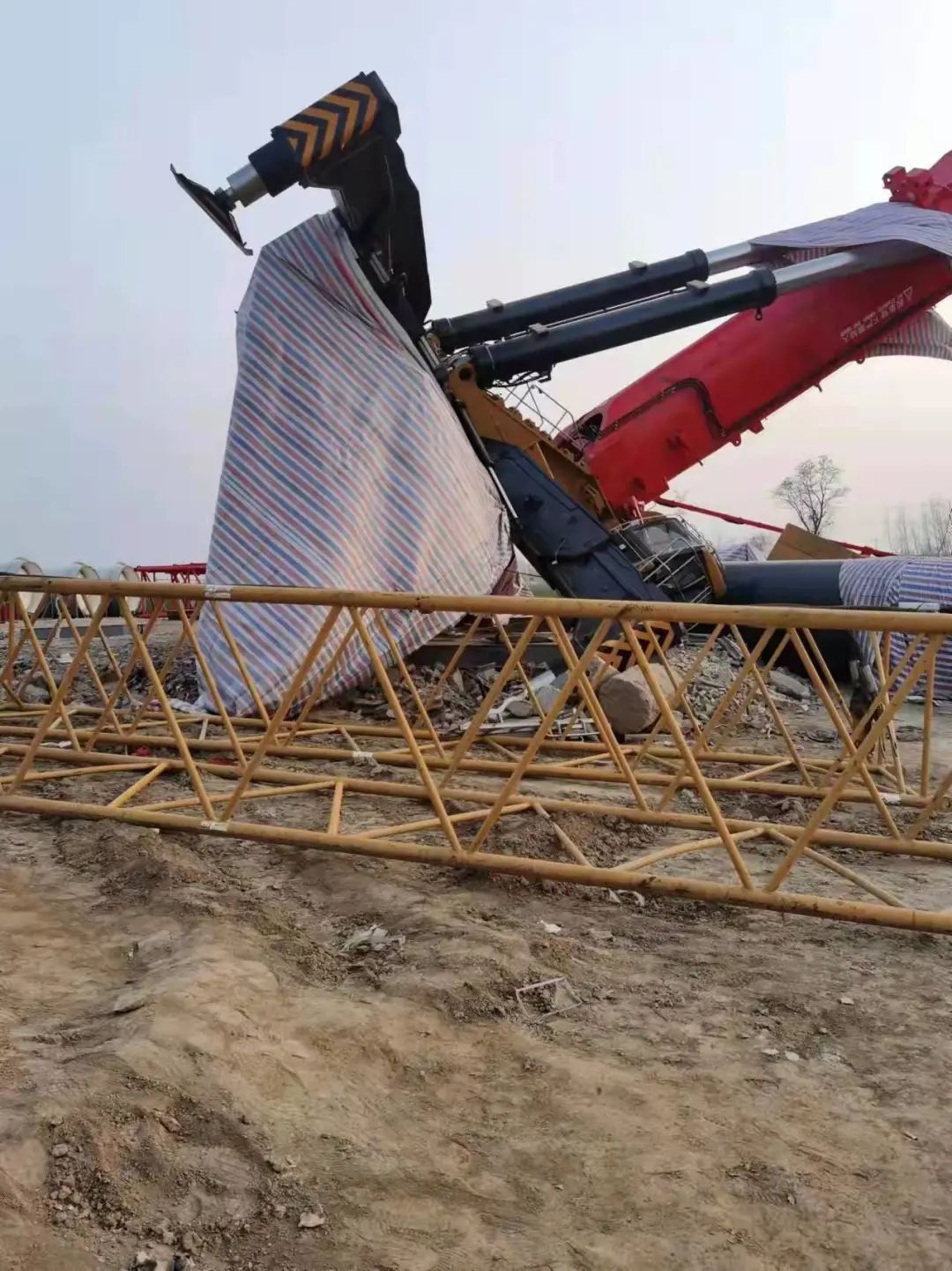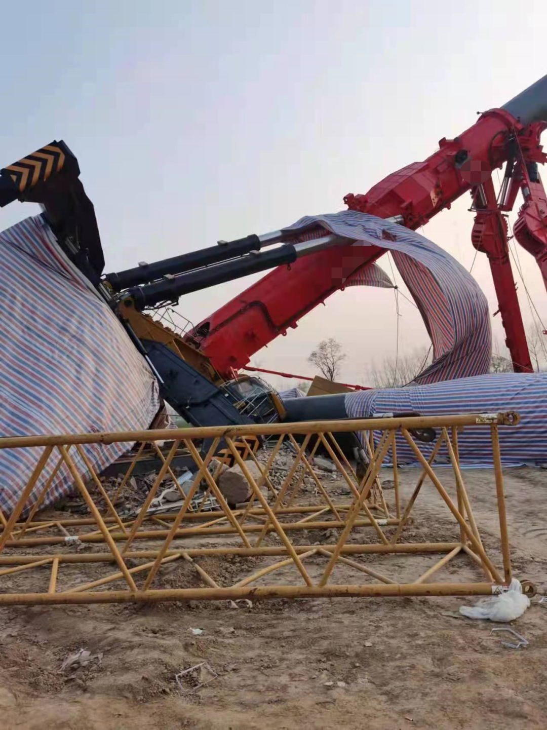 2022年2月26日,某風(fēng)電項(xiàng)目吊裝過程中發(fā)生主吊大臂折斷事故(疑似800噸吊車折臂倒下)