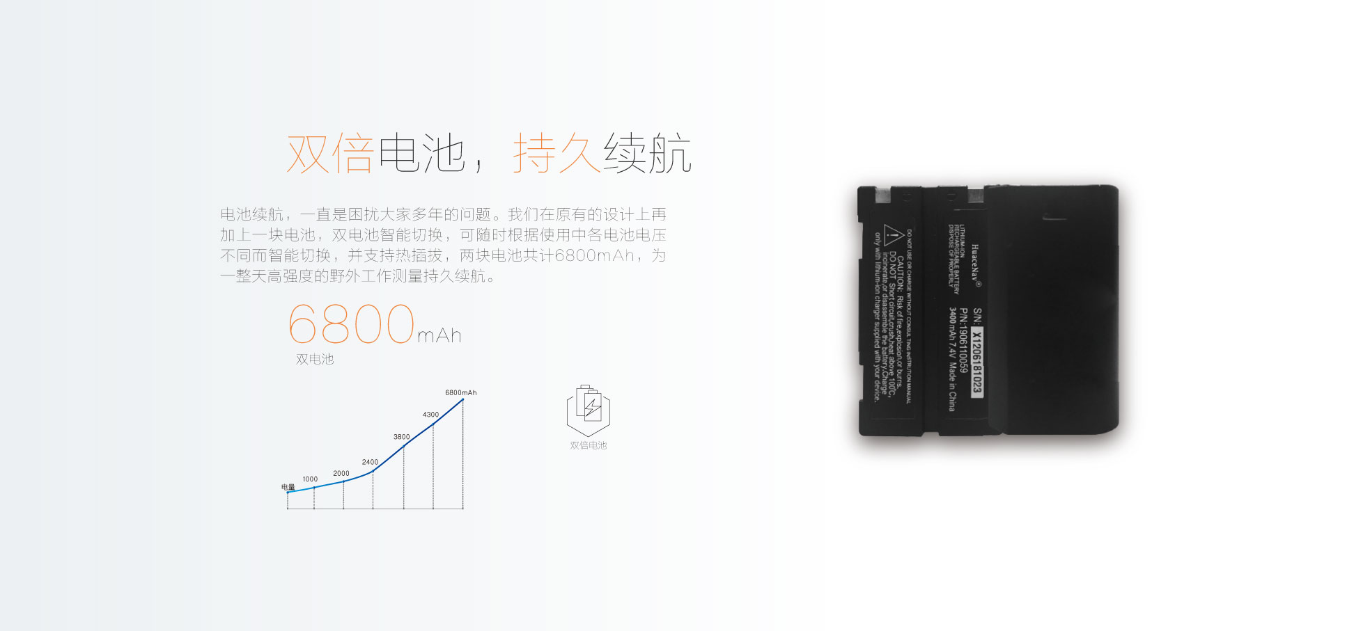 RTK模式12小時,可外接直流電,雙電池電源自動切換 |